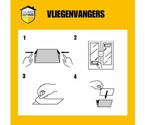 De vliegenvallen zijn makkelijk in elkaar te vouwen en te plaatsen. De glanzende laag van de vliegenvangers trekken vliegen aan, waarna ze blijven plakken door de lijmstrip. De vliegenvangers kunnen opgehangen worden in onder andere woonkamers, keukens, schuren en caravans. Werkzaam tot wel 6 maanden.